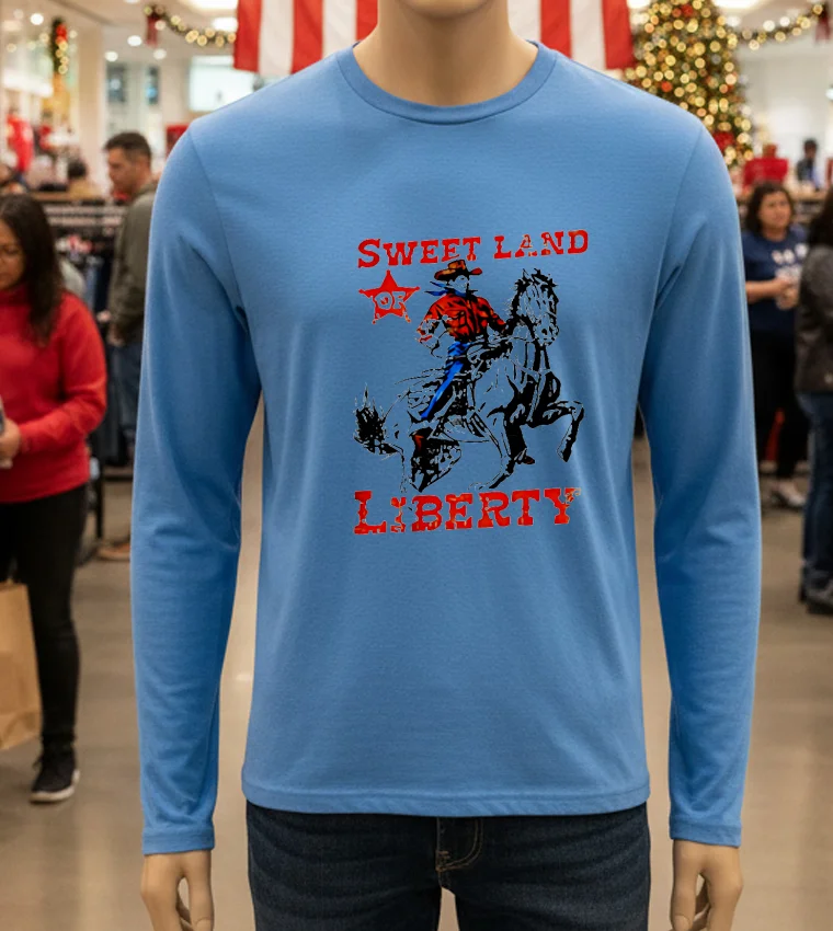 Remember seeing that local San Antonio influencer, Sofia, rocking a similar vibe on her Instagram stories, maybe at a Pearl Brewery event? She always nails that effortlessly cool, authentic San Antonio street style. That’s exactly the energy I felt when I first saw the Cowboy Sweet Land Of Liberty Shirt. It’s not just a tee; it’s a statement, especially with the Y2K revival hitting San Antonio’s fashion scene hard. Everywhere you look, from the Southtown boutiques to the Market Square vendors, folks are embracing bold graphics and a touch of Americana. This shirt perfectly captures that blend of rugged independence and classic San Antonio charm. Imagine strolling through a “First Friday” art walk in Southtown, the vibrant murals as your backdrop, or grabbing a coffee at a cool spot near the Riverwalk. This isn’t just for a rodeo, though it’d be perfect there too! It’s for the everyday adventurer, the one who appreciates a good graphic tee that tells a story. It speaks to that desire for genuine, unpretentious fashion that feels both current and timeless. It’s for anyone who wants to celebrate a bit of freedom and heritage, wrapped up in today’s most sought-after vintage aesthetic, perfect for the current San Antonio street style scene.