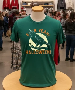 Remember that buzz a few weeks back about San Antonio’s “Autumn at the Pearl” street style showcase? Everyone was talking about how to incorporate unique, personal touches into their fall wardrobes, moving beyond just pumpkin spice lattes and basic sweaters. Our very own local style icon, Esmeralda Garza, from “Riverwalk Rags” blog, even mentioned on her Instagram live that she was “hunting for those standout pieces that scream personality, especially with early Halloween vibes starting to creep in.” Well, Esmeralda, and everyone else eager to embrace that spirited seasonal shift, this tee is for you! Imagine this: you’re planning a fun night out at a vintage pop-up market in Southtown, maybe grabbing a late-night bite after exploring some of the latest sustainable fashion trends at a local boutique. You want something that’s effortlessly cool, a nod to the spooky season without being overly costume-y. The F Yeah! Halloween! Raven Shirt fits the bill perfectly. It’s not just a shirt; it’s a statement, a conversation starter that says, “Yeah, I’m ready for fall, and I love a good raven!” It taps right into the current hot fashion topics like “statement streetwear,” “eco-conscious graphic tees,” and the “dark academia aesthetic” that’s everywhere. This isn’t just about Halloween; it’s about embracing that slightly mysterious, playful side all year round, a perfectly on-trend piece for anyone looking to elevate their casual cool.