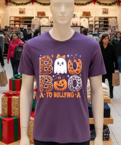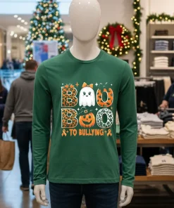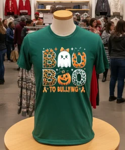 What really captures the eye on this shirt is that bold, playful ghost. It’s not spooky-scary, it’s friendly-ghostly, delivering a powerful “Boo To Bullying” message with a cheeky grin. That bright orange, it just pops! Wearing this shirt, I feel like I’m part of something bigger, a quiet but firm stand against unkindness. It’s an easy way to show solidarity, especially during October when anti-bullying campaigns often gain more traction. There’s a certain pride that comes with wearing a shirt that stands for something positive. To keep that vibrant orange and the design crisp, I always turn it inside out before washing in cold water and then air dry it. It’s a small effort, but it ensures this shirt remains a loyal companion for many Halloweens and Unity Days to come, reminding everyone that kindness is always in fashion.