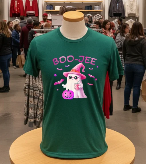 Okay, so I was scrolling through my feed the other day, and this local San Antonio fashion blogger, @SATXStyleMaven, posted about how she’s already prepping her “spooky season street style” for the upcoming Dia de los Muertos events and even the San Antonio Fashion Week’s casual day looks. She was talking about how graphic tees are having a massive moment, especially those with a vintage vibe or a touch of playful irony. Instantly, my mind jumped to my Boojee Ghost Cute Pink Halloween Design Shirt. I mean, imagine rocking this at the First Friday Art Walk in Southtown, or while grabbing some artisan coffee down near the Pearl. It’s not just for Halloween night; this tee is perfect for signaling your playful side all fall long. With the San Antonio Botanical Garden’s ‘Fall into Nature’ festival coming up, or even just a casual afternoon exploring the River Walk, this shirt is it. It totally captures that current trend of “quirky cute” and “elevated casual wear” that’s everywhere right now, especially as people are moving towards more unique, expressive pieces. This isn’t just a basic tee; it’s a conversation starter that fits right into our city’s vibrant, eclectic fashion scene.