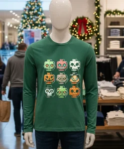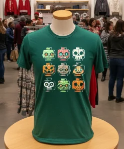 What truly sets this shirt apart, though, is that instantly recognizable, almost nostalgic design. It’s not just a flat print; there’s an artistry to how those iconic horror figures are rendered in a block-head style. It’s a subtle nod to both childhood fun and a love for frights, creating a clever visual pun that gets a chuckle and a nod of appreciation. Wearing it, you don’t just feel comfortable; you feel clever, a little bit rebellious, and definitely unique. It’s a statement of pride in your quirky tastes. To keep that awesome print vibrant and those colors popping, always turn it inside out before washing, use cold water, and tumble dry low. This isn’t just a shirt for a season; it’s a companion for your individuality, ready to be pulled out whenever you want to inject some fun into your day.