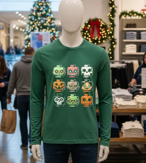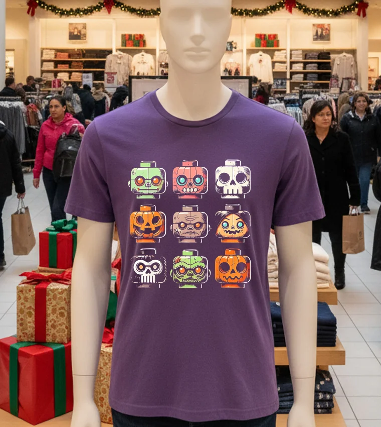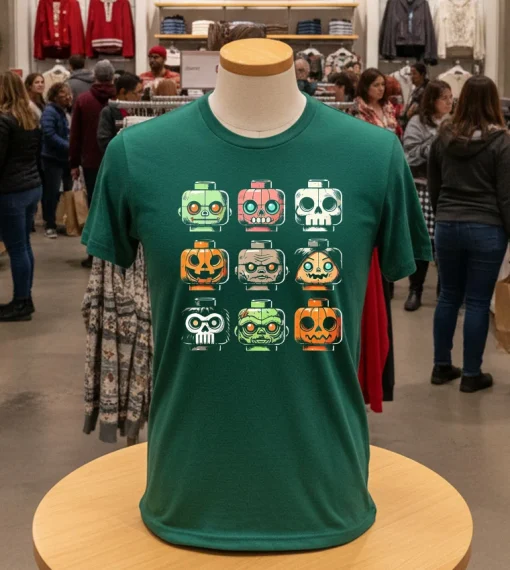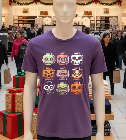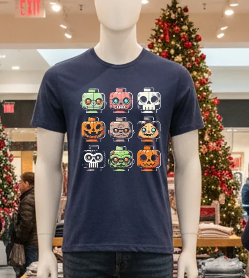Remember when the San Antonio Fiesta kicked off last year, and everyone was talking about how fashion-forward the city’s street style was becoming? I sure do! I was scrolling through my feed, seeing all these amazing `vintage graphic tees` and `oversized shirts` making a comeback, and then I saw this post from a local fashion influencer, @SATXStyleMaven, teasing “the ultimate Halloween character crossover.” My mind immediately went to the Building Brick Heads Horror Halloween Characters Mask Shirt. See, this isn’t just a Halloween tee; it’s a statement piece that fits right into San Antonio’s unique blend of tradition and trend. Imagine you’re gearing up for the “Halloween in the Heights” block party in Monticello Park, or even just hitting up a casual Friday night at The Pearl. You want something that says “I get it, I’m cool, and I’m ready for some spooky fun,” without going full costume. This shirt nails it. It taps into that nostalgia for classic horror and the playful, creative spirit of building blocks, making it perfect for anyone looking to add some `retro spooky season apparel` to their wardrobe. It’s for the person who appreciates a good `graphic tee trend` but also wants to show off their personality at events like the UTSA Homecoming, where spirit wear usually reigns supreme, but a little edgy fun stands out. It’s not just a shirt; it’s a conversation starter, perfect for those `San Antonio streetwear` vibes that are all about self-expression and effortless cool.
