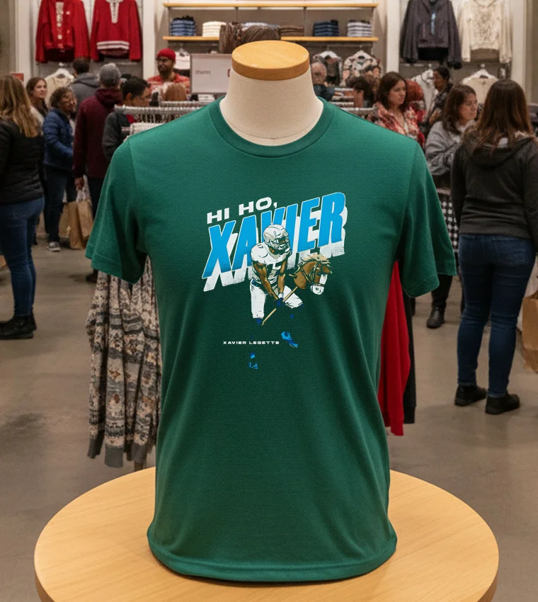 Remember that buzz a few weeks back in San Antonio, right before the big NFL draft? Everyone was talking about who the Panthers would pick, especially after that “Game Day Drip” segment on local TV showcased some incredible fan fashion. Well, that’s exactly when I started seeing talk about the Carolina Panthers Xavier Legette Hi Ho Shirt pop up everywhere. Local fashionistas, like @SATXStyle on Instagram, were even predicting how a classic sports tee could be elevated with the right accessories – think chunky silver jewelry, a distressed denim jacket, or even styled under an oversized blazer for that “athleisure chic” San Antonio loves so much. There was this whole “streetwear meet-gridiron glam” vibe going around, and a lot of folks were getting ahead of the curve, wanting to rock their pride for the new star. Whether you’re heading to a watch party at The Friendly Spot, hitting up a downtown block party, or just want to show off your allegiance while grabbing some tacos on the Riverwalk, this T-shirt fits right into San Antonio’s vibrant, eclectic style scene. It’s more than just a piece of fan gear; it’s a canvas for self-expression, blending that “vintage sports shirt” energy with today’s desire for “oversized graphic tees” and unique “custom print t-shirts.” Plus, with the city’s growing interest in “sustainable fashion choices,” a high-quality tee you’ll wear for years is a smart move.