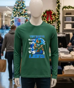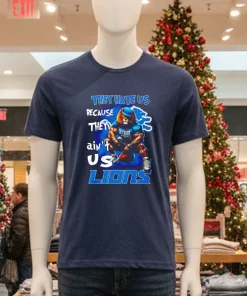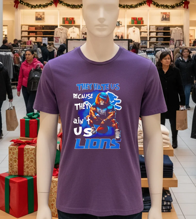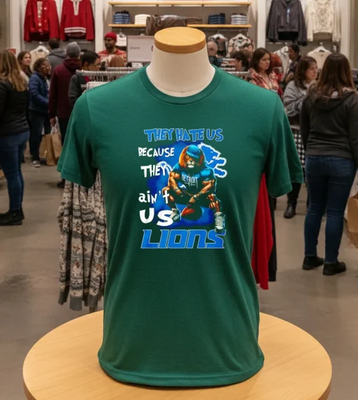 Remember that buzzing excitement when the Detroit Lions clinched the NFC North title, making their deepest playoff run in decades? It wasn’t just a win; it was a cultural moment, especially for fans like Marcus here in San Antonio. He’d been rocking his Lions gear through thick and thin, and now, with the city’s fashion scene embracing a bold, expressive style, his Detroit Lions They Hate Us Because They Ain T Us Lions Mascot Shirt felt more relevant than ever. Just last week, he was scrolling through his feed, seeing all the buzz about the upcoming “River City Style Fest” downtown, and thinking, “What am I gonna wear?” He knew he needed something that screamed ‘fandom’ but also tapped into San Antonio’s current vibe – a blend of vintage sports apparel chic and that modern athleisure comfort. The “They Hate Us Because They Ain’t Us” slogan isn’t just a phrase; it’s a defiant roar, a perfect fit for a city that celebrates its unique heritage. Marcus recalled a local fashion blogger, Mia’s ‘Street Style Chronicles,’ highlighting how graphic tees with strong narratives were dominating the downtown fashion landscape, perfect for a casual stroll on the Riverwalk or catching a game at a local spot. He pictured himself at the fest, this shirt perfectly paired with some relaxed fit cargo shorts and chunky sneakers, nodding to that nostalgic Y2K aesthetic while firmly in the present. This isn’t just game-day wear; it’s a statement piece for anyone who’s stuck with their team, through every heartbreaking loss and every glorious comeback, embodying that unyielding spirit.