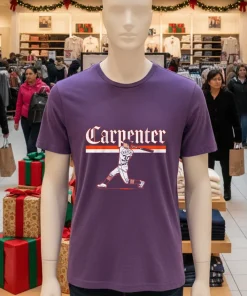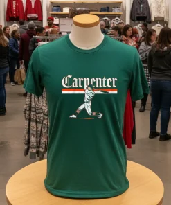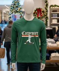 The sheer artistry captured in the “Slugger Swing” design is what sets this shirt apart. It’s not just a logo; it’s a dynamic snapshot of Carpenter’s powerful swing, frozen in time, radiating that raw energy and dedication. The sharp lines and vibrant print practically leap off the fabric, making you feel a surge of pride, a connection to the grit and determination of the game. This isn’t just a casual top; it’s a piece of wearable art that celebrates athleticism and passion. To keep that image crisp and bright, a simple cold wash and tumble dry low will do the trick. Turn it inside out before washing – a little tip to protect the graphic – and avoid harsh chemicals. This isn’t just a shirt; it’s a companion for your victories, big or small, a testament to the enduring spirit of sports that feels good to wear every single day.
