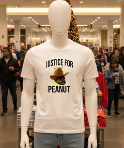 Just last week, my friend Sarah was scrolling through her feed, looking for something fresh. She saw a post from a local San Antonio fashion blogger, “Fiesta Threads SA,” raving about how authentic, quirky pieces are taking over the Riverwalk style scene. It wasn’t about high-fashion labels this spring, but about personality. Suddenly, she remembered seeing the Justice For Peanut Cowboy Squirrel Shirt online and thought, “That’s it!” San Antonio’s fashion scene, especially downtown near the Pearl or during Fiesta, is all about self-expression. People here are really leaning into sustainable fashion these days, mixing vintage finds with new, ethically sourced pieces. This isn’t just a shirt; it’s a conversation starter, perfect for a city that loves a good story. She pictured herself wearing it to the next art walk in Southtown, or maybe to a Spurs game – casual, cool, and totally her. It’s got that cool vintage vibe that’s huge right now, an antidote to fast fashion, embodying slow fashion principles by being something you’ll cherish. Plus, it just makes you smile, bringing a little bit of that Texas charm and independent spirit. She needed something that felt like her, not just another mass-produced item. This shirt felt like a nod to the city’s unique blend of tradition and modern edginess, something you’d wear while enjoying a morning coffee at a local artisan market or exploring the latest mural in the St. Mary’s strip. The idea of “Justice For Peanut” just resonated with that quirky, independent spirit that defines so much of San Antonio’s creative community. It’s not just apparel; it’s a statement about embracing the unexpected and standing out from the crowd, which is totally trending here.