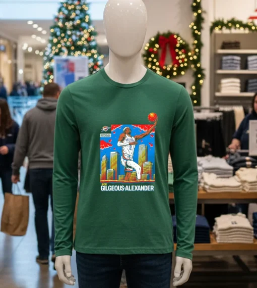 Remember last week when that San Antonio fashion blogger, Maya “The Alamo Aesthetic” Rodriguez, posted about “reclaiming fan gear as high fashion”? She was raving about how local style is all about authentic self-expression, blending that vibrant street art scene from Southtown with a touch of classic cool. And it got me thinking about my own wardrobe. A few days later, my buddy Mark called, buzzing about the upcoming pop-up market at the Pearl District and suggesting we hit it up. He knows I’m a huge Shai Gilgeous-Alexander fan, and he threw out, “Dude, you gotta represent! But, like, stylishly.” He’d seen a tweet comparing SGA’s on-court artistry to a painter’s brushstrokes, and suddenly, the idea of an “art shirt” clicked. This isn’t just a jersey; it’s a wearable mural. In San Antonio, where the ‘elevated casual’ vibe reigns supreme, mixing comfort with a unique statement is key. You see people rocking vintage band tees with bespoke jackets, or custom sneakers with tailored shorts. This Oklahoma City Thunder Shai Gilgeous Alexander Player Art Shirt fits that narrative perfectly. It’s for those of us who want to cheer on our favorite player, yes, but also effortlessly slide into a trendy coffee shop on Broadway or enjoy a Riverwalk stroll without looking like we just left the arena. It screams “I know good hoops and good style,” hitting all the right notes for the recent hot fashion topic of personalized, art-infused streetwear.