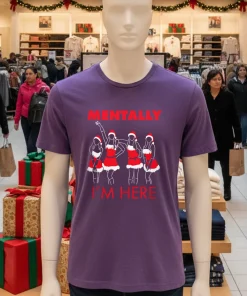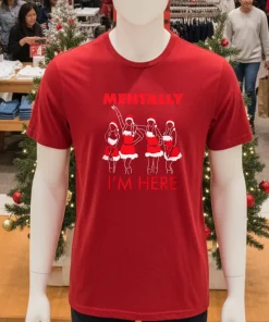 Let’s dive into that phrase: “Mentally I’m Here.” It’s so relatable, isn’t it? It’s not just a cute saying; it’s a subtle nod to being present without taking everything too seriously. This isn’t some stiff, scratchy novelty tee. We’re talking about a shirt that feels like your favorite worn-in tee the moment you pull it on. It’s got that perfect drape, ideal for pairing with anything from high-waisted mom jeans for a casual stroll through a San Antonio holiday market, or dressed up under a comfy cardigan with some boots for a festive gathering. The style is easygoing, a little vintage-y, and utterly American. It’s about comfort meeting character. Why not make your statement without even trying? Buy now and embrace your holiday mood!
