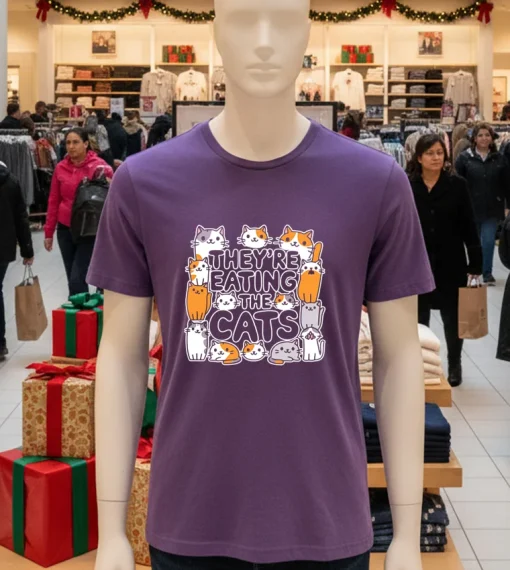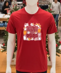Remember last month when that viral meme of a cat “eating” spaghetti hit everyone’s feed, and even local San Antonio fashionistas like @SATXStyleMaven were seen sporting quirky, animal-themed graphics at the Pearl’s First Thursday? Well, the They Re Eating The Cats Cartoon Shirt brings that same playful, irreverent energy right to your wardrobe! Imagine this: you’re heading to the San Antonio Museum of Art for their “Art after Hours” event, wanting something that says “I appreciate art, but I also don’t take myself too seriously.” Or maybe you’re grabbing a coffee at Commonwealth Coffeehouse, and you want to spark a smile, a little conversation. This isn’t just a shirt; it’s an invitation to a good time, a nod to the lighter side of life. In a city like San Antonio, where vibrant culture and a laid-back vibe intertwine, this tee fits right in. It’s perfect for the upcoming Luminaria contemporary arts festival, where expressive, unique styles truly shine. Forget trying to keep up with fleeting micro-trends; this tee embodies that timeless, authentic self-expression that’s becoming so central to San Antonio’s fashion scene. We’re seeing a huge shift towards sustainable fashion and vintage-inspired pieces, moving away from fast fashion. People want clothes that tell a story, that are comfortable, and frankly, just make them happy! This shirt does exactly that. It’s for the person who wants to stand out gently, who enjoys a chuckle, and who appreciates a unique graphic that isn’t just another mass-produced design. It’s your statement piece for a casual brunch on the Riverwalk, a lively evening at Market Square, or just chilling with friends, bringing that fun, San Antonio spirit wherever you go. Who needs boring when you can have this much personality?