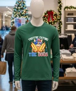 So, picture this: it’s Fiesta in San Antonio, right? The city is buzzing, colors are everywhere, and the air is thick with anticipation for the King William Fair. Everyone’s trying to stand out, whether it’s with vibrant papel picado patterns or those cool, upcycled vintage looks that are so hot in the Southtown arts district right now. I was scrolling through my feed the other day, and saw a local fashion influencer, @SATXStyleMaven, talking about how unique graphic tees are making a huge comeback, especially ones that spark conversation. She was hinting at this new trend of “statement casual” – where your clothes literally tell a story or provoke a thought, moving beyond just logos. That’s exactly what the They Re Eating The Dogs They Re Eating The Cats Hot Dog Sandwiches Shirt does. It’s not just a shirt; it’s a whole vibe!